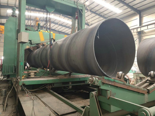 簡單來說螺旋鋼管就是用帶鋼卷板為原料,經(jīng)過板材開平后經(jīng)多道軋輥擠壓成型,然后以自動雙面埋弧焊的焊接工藝制程,焊管兩端切平后打坡口便于焊接。